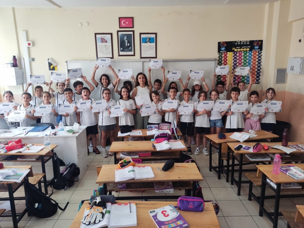 "BIG STEPS FROM SMALL CITIZENS" E TWINNING PROJESİNİ TAMAMLAYAN 3F SINIFI ÖĞRENCİLERİ SERTİFİKALARINI SINIF ÖĞRETMENİ BERNA AYDIN 'DAN ALDILAR.ÖĞRETMEN VE ÖĞRENCİLERİMİZİ TEBRİK EDİYORUZ.